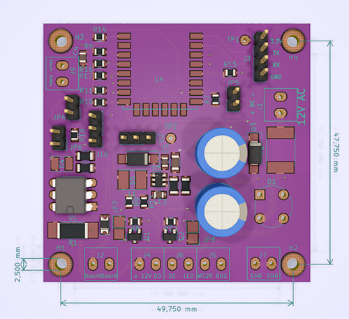 The pcb is designed with [KiCad](http://kicad-pcb.org/) an opensoure EDA System. Ready Gerber Files can be found under Gerber. Plz use the Version Tab for download the newest Release the Master Branch includes the current development stage! NFC/RFID WIFI Access Control hardware interfacing a cheap MFRC522, PN532 RFID, RDM6300 readers or Wiegand RFID readers with a Espressif's ESP8266 Microcontroller as Wifi Bridge to drive the door open coil to unlock a home door and to include it into a home automatisation system. The pcb is designed with [KiCad](http://kicad-pcb.org/) an opensoure EDA System. Ready Gerber Files can be found under Gerber. Plz use the Version Tab for download the newest Release the Master Branch includes the current development stage!